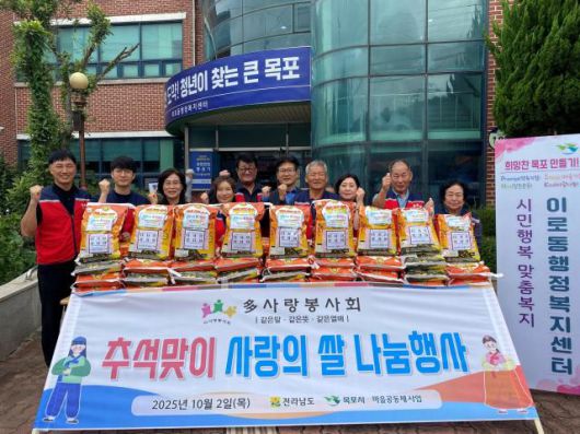 목포 다사랑봉사회(회장 김태운)는 지난 2일, 추석을 맞아 쌀 10kg 40포(120만 원 상당)를 이로동 행정복지센터에 기탁했다.