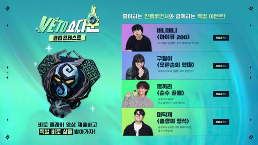 또한 비토의 콘셉트를 반영한 ‘비토 쇼다운 클립 콘테스트’도 함께 진행된다. 참가자들은 비토의 스킬을 활용한 플레이 영상을 제출할 수 있으며 인플루언서 심사를 통해 각 테마별 상위 10명이 선정되어 특별 상패와 굿즈를 받을 수 있다.