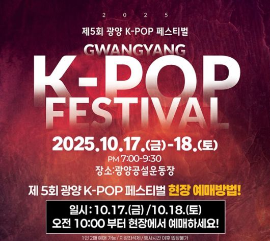 이번 페스티벌은 아이돌, 발라드 등 최정상급 아티스트들이 선보이는 K-팝 무대와 참여형 프로그램 등으로 꾸며져 광양의 새로운 관광 브랜드로 자리매김할 전망이다.