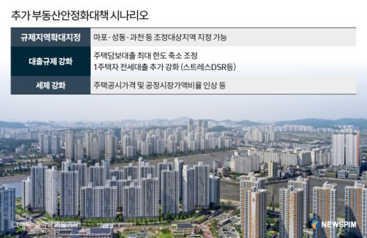부동산업계 관계자는 "이재명 정부의 세번째 부동산 대책인데다 주택공급 확대를 기본으로 하고 있는 9·7대책의 실패를 사실상 인정한 것으로 보이고 있기 때문에 강도가 6.27 대책 만큼 높을 것으로 본다"며 "규제지역 확대와 주담대 한도 제한 축소 등이 점쳐지며 똘똘한 한채를 막기 위한 전세대출 추가 축소 및 스트레스DSR 도입 등을 예측해볼 수 있을 것"이라고 말했다.
