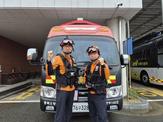 당시 수색에 나선 임영현 소방경과 임민재 소방장(사진제공=충북소방본부) |