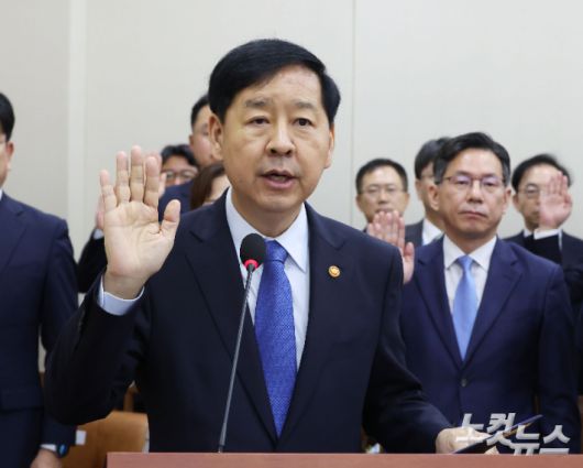 구윤철 경제부총리 겸 기획재정부 장관이 13일 오전 국회 기획재정위원회 국정감사에 출석해 선서를 하고 있다. 황진환 기자 |