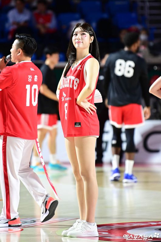 (엑스포츠뉴스 잠실, 박지영 기자) 13일 오후 서울 잠실학생체육관에서 열린 '2025-2026 LG전자 프로농구' 서울 SK와 부산 KCC의 경기, 치어리더 정다혜가 열띤 응원을 펼치고 있다.박지영 기자 jypark@xportsnews.com