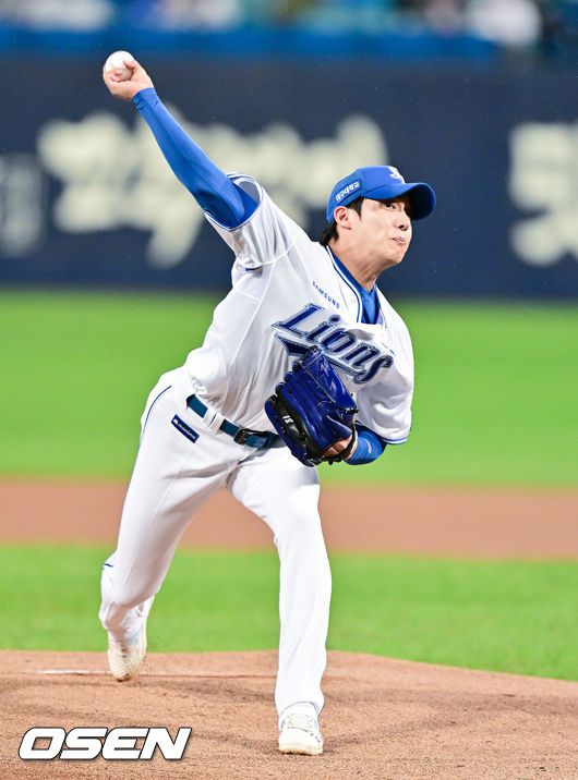 [OSEN=대구, 박준형 기자] 13일 대구 삼성라이온즈파크에서 ‘2025 신한 SOL뱅크 KBO리그’ 준플레이오프(5전 3선승제) 3차전 삼성 라이온즈와 SSG 랜더스의 경기가 열렸다 삼성은 원태인, 방문팀 SSG은 드류 앤더슨을 선발로 내세웠다. 1회초 삼성 선발투수 원태인이 역투하고 있다. 2025.10.13 / soul1014@osen.co.kr
