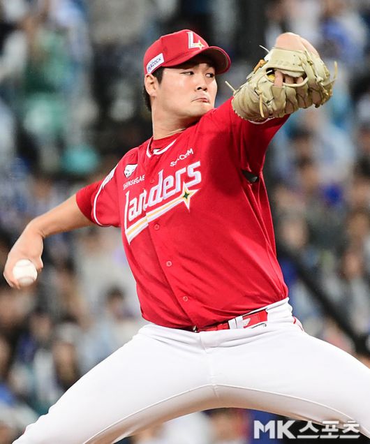 4회말에 등판한 SSG 두번째 투수 전영준이 역투하고 있다.