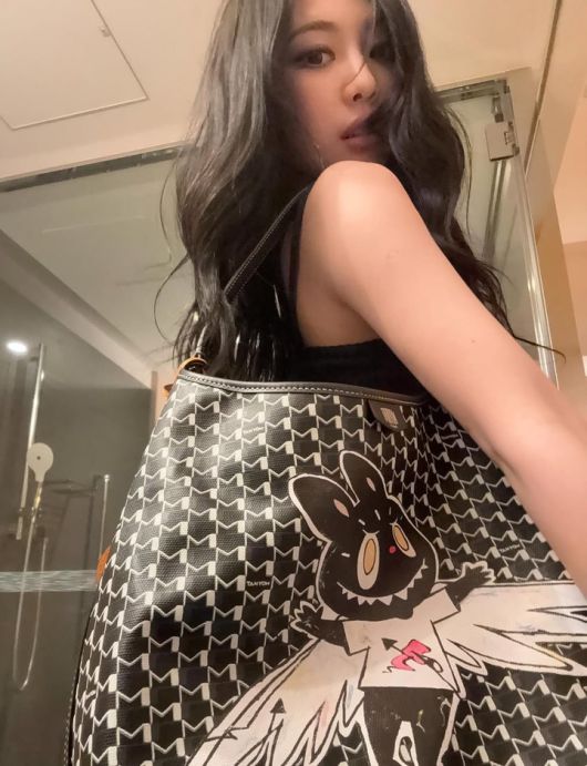 사진 속 그는 검정 탑에 오버사이즈 패턴 토트백을 매치해 스트릿 무드를 강조했다. 백에 달린 그래픽 키링과 애니멀 일러스트가 더해지며 장난기 가득한 감성을 완성했다.
