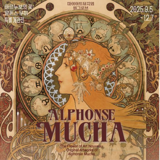 도심형 아트쉼터 역할을 톡톡히 하는 마이아트뮤지엄이 서울 마곡의 ‘마이아트뮤지엄 원그로브점’ 개관을 기념해 특별개관전을 연다. 오는 12월 7일(일)까지 열리는 ‘아르누보의 꽃: 알폰스 무하 특별개관전’이다.