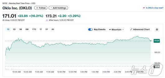 13일(현지 시각) 뉴욕증시에서 오클로는 16.21% 폭등한 171.01달러를 기록했다.