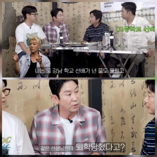 은지원이 후배 강남과 같은 고등학교 출신임을 밝히며, 같은 선생님에게 퇴학당했다고 고백해 웃음을 자아냈다.사진= 유튜브 채널 ‘짠한형 신동엽’ |