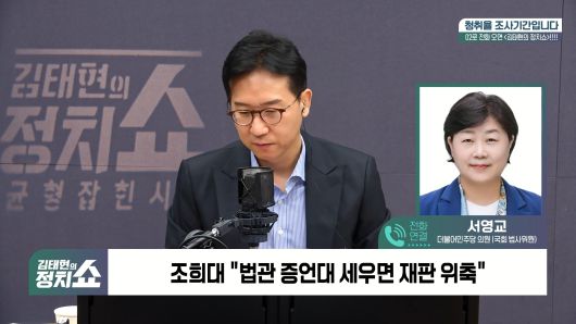 ▶서영교 : 어제는 제일 중요한 기관증인이 조희대 대법원장이었습니다. 왜냐하면 이재명 대선후보 자격을 박탈하려고 했다라고 하는 대선개입 의혹이 아주 중요하게 실제 파기환송이라고 하는 사건으로 있었기 때문에 제일 중요한 기관증인이었고요. 그럼에도 불구하고 추미애 위원장께서 아주 운영의 묘를 살려서 현장에 저희들의 질의를 듣게 했기 때문에 의미 있었다 이렇게 생각합니다.