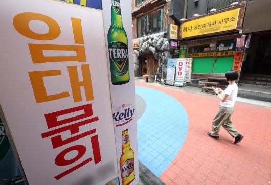 ‘임대문의’ 안내문이 붙은 서울 오피스 건물 외벽. 8월 서울 오피스 시장은 매매 거래가 급감했지만 임대 수요는 꾸준히 이어지고 있다. 연합뉴스 |
