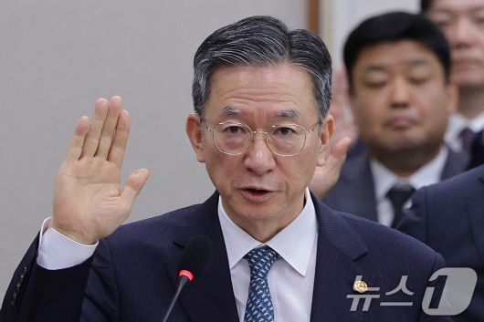 정성호 법무부 장관이 14일 서울 여의도 국회 법제사법위원회에서 열린 법무부 등에 대한 국정감사에서 증인 선서를 하고 있다. 2025.10.14/뉴스1 ⓒ News1 신웅수 기자 |