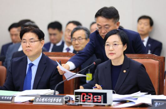 [이데일리 노진환 기자] 한성숙 중소벤처기업부 장관이 14일 서울 여의도 국회에서 열린 중소벤처기업부 등에 대한 산업통상자원중소벤처기업위원회 국정감사에서 질의에 답변하고 있다.