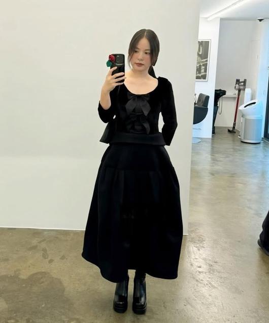 공개된 사진에서 민효린은 검은색 투피스를 입고 거울 셀카를 찍고 있다. 해당 옷은 최근 민효린이 하객룩으로 입은 옷으로, 당시 그의 근황이 오랜만에 공개돼 화제를 모았다.