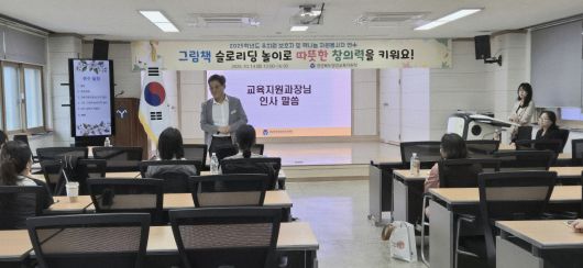 경상북도영양교육지원청(교육장 박근호)은 2025년 10월 14일(화) 영양교육지원청 대회의실에서 '그림책 슬로리딩 놀이로 따뜻한 창의력을 키워요'라는 주제로 관내 유치원, 어린이집 및 초등 1, 2학년 학생과 학부모를 대상으로 2025 유치원·초등 저학년 보호자 및 책나눔 자원봉사자 연수를 개최하였다.