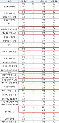 또 통합로그분석시스템, 유해사이트차단시스템 등도 2016년 도입 이후 교체 없이 9년째 사용되고 있는 것으로 나타났다.