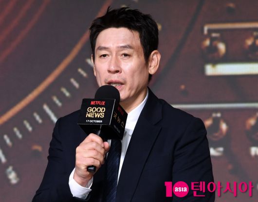 14일 오전 서울 종로구 JW 메리어트 동대문 스퀘어에서 넷플릭스 영화 '굿뉴스'의 제작보고회가 열렸다. 현장에는 배우 설경구, 홍경, 류승범과 변성현 감독이 참석했다.