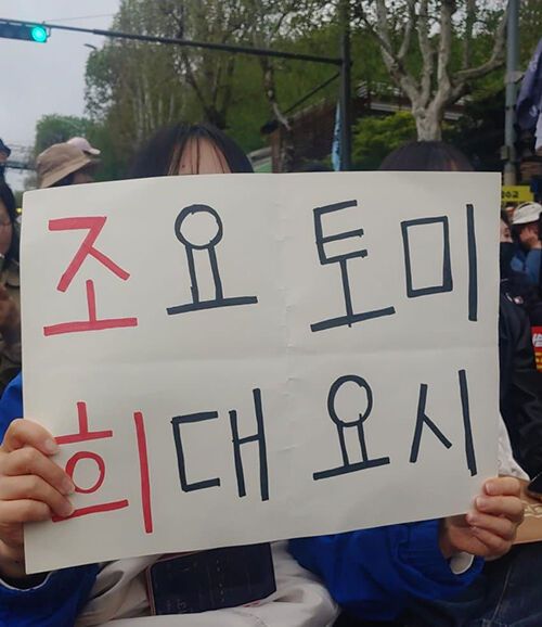 난장판 속 등장한 팻말...'조요토미 희대요시'