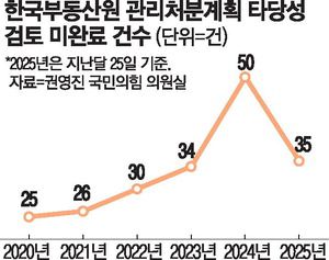 14일 한국부동산원이 권영진 국민의힘 의원실에 제출한 관리처분계획 타당성 검토 현황에 따르면 지난달 25일 기준 미완료 건수는 35건으로 예년 수준을 넘어섰다.