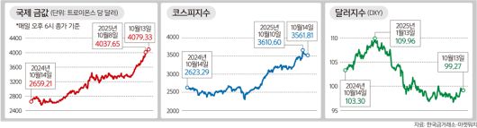 14일(미 동부시간) 블룸버그통신에 따르면 금 현물 가격은 전날 장중 4131.29달러까지 치솟아 사상 최고치를 갈아치웠다. 같은 날 뉴욕상품거래소에서 12월 인도분 금 선물 가격은 3.4% 급등한 온스당 4135.50달러를 나타냈다. 올해 들어 금값 상승률은 57%까지 치솟았다. 같은 시간 은 현물 가격은 4.7% 급등한 온스당 52.5070달러를 보였다. 1980년 1월 미국 ‘은파동’ 사태 때 기록한 고점을 넘어섰다.