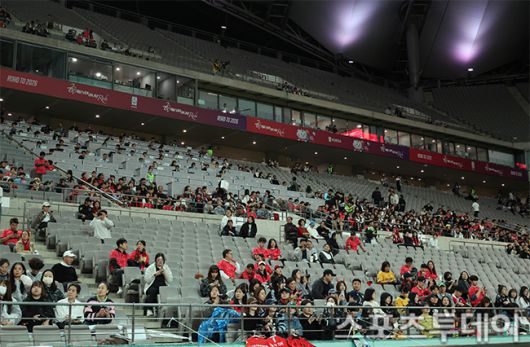 [스포츠투데이 팽현준 기자] 14일 서울월드컵경기장에서 열린 축구 국가대표팀 한국과 파라과이의 친선경기 시작을 앞두고 경기장이 텅빈 모습을 하고 있다. 상암은 2만명 남짓한 팬들이 자리를 했다. 2025.10.14. [스포츠투데이 팽현준 기자 sports@stoo.com]