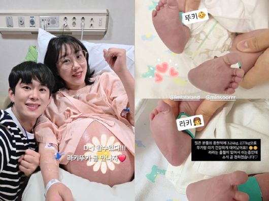 14일 '엔조이커플' 공식 계정에는 ""많은 분들의 응원 덕에 3.24kg, 2.77kg으로 뚜키랑 라키 건강하게 태어났어요! 라라는 출혈이 있어서 쉬는 중인데 소식 곧 전하겠습니다♡"라는 글과 함께 쌍둥이의 앙증맞은 발 사진이 공개됐다.