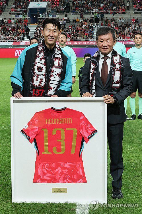 손흥민은 두 손으로 얼굴을 감싸 쥐며 감격스러움을 표했고, 차 전 감독은 손흥민의 영문 이름과 '137'이 새겨진 유니폼 액자를 선물했다.