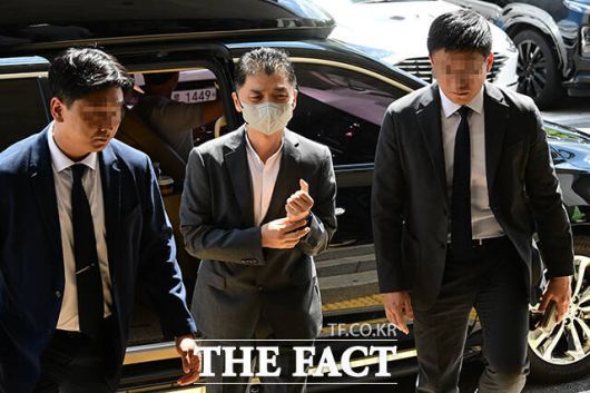 김범수 카카오 창업자가 지난 8월 29일 오후 서울 양천구 서울남부지방법원에 열린 1심 결심공판에 출석하고 있다. /남윤호 기자 |