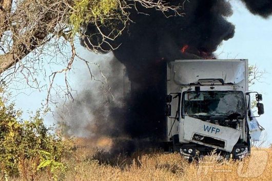 우크라이나에 구호물품을 전달하던 유엔 세계식량계획(WFP) 차량이 14일(현지시간) 러시아 드론의 공격을 받았다. 2025.10.14. ⓒ AFP=뉴스 |