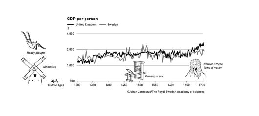 이들을 선정한 노벨상 위원회는 ‘정체(stagnation)’가 인류(경제)의 오랜 표준이었다고 지적했다. 인류 역사 대부분의 기간 동안 경제 성장은 거의 제자리에 머물렀다. 가끔 중요한 발명이 나와 생활이 나아지기도 했지만, 성장은 이내 멈췄다. 그런데 지난 200년간 인류는 가장 오랜 기간, 가장 가파른 경제성장을 이뤄냈다.