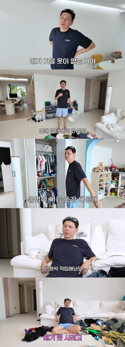 그는 새로 장만한 아들의 옷을 펼쳐놓으며 "(아들) 옷 어디서 사냐고 엄청 많이 물어보시는데 전 쿠팡, 남대문에서 (산다). 백화점 브랜드도 가끔 살 때 있긴 하지만 남대문 (트렌드가) 진짜 빠르다"라고 전했다.