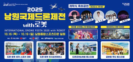 [박호정 기자] (전북=국제뉴스) 박호정 기자 = 국내 최대 규모의 융복합 드론 축제인 '2025 남원국제드론제전 with 로봇'이 오는 10월 16일부터 19일까지 4일간 남원종합스포츠타운 일원에서 성대하게 개최된다.