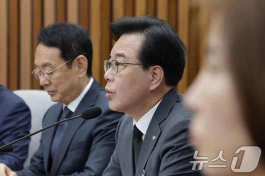 송언석 국민의힘 원내대표가 14일 서울 여의도 국회에서 열린 국정감사 대책회의에서 발언하고 있다. 2025.10.14/뉴스1 ⓒ News1 신웅수 기자 |