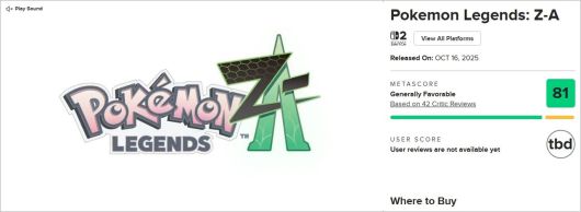 - 메타크리틱 81점을 기록한 레전즈 Z-A |