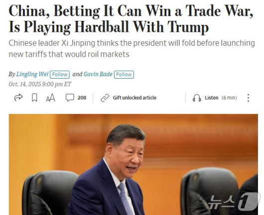 중국이 버티는 것은 미중 무역전쟁에서 이길 수 있다고 판단하기 때문이라고 미국 대표 경제지 월스트리트저널(WSJ)이 14일(현지 시각) 보도했다.