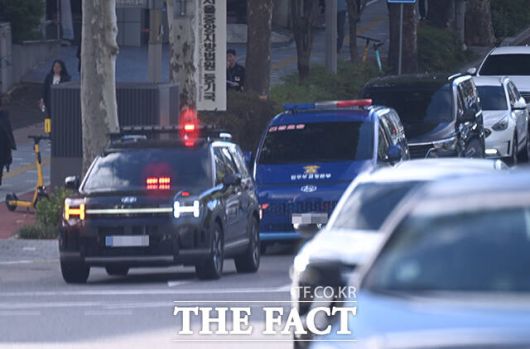 15일 오전 윤석열 전 대통령을 태운 호송차량이 내란 특검 사무실이 마련된 서울 서초구 서울고등검찰청 청사로 이동하고 있다. /이새롬 기자 |