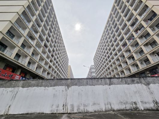지난 14일(현지시간) 오후 캄보디아 시하누크빌에 있는 범죄 단지로 추정되는 건물 인근에 3m가 넘는 담벼락이 서 있다. [연합]