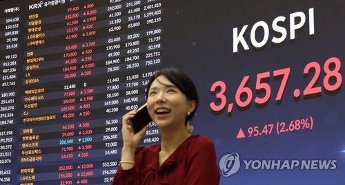 전날에도 코스피는 한때 3,646.77까지 뛰어 당시 장중 최고치 기록을 경신한 바 있다.