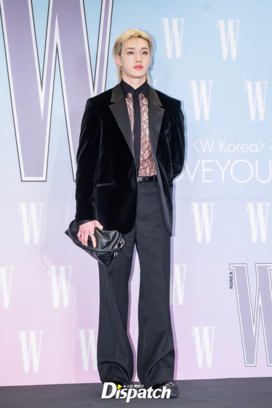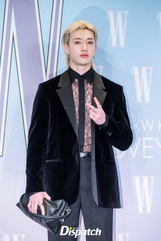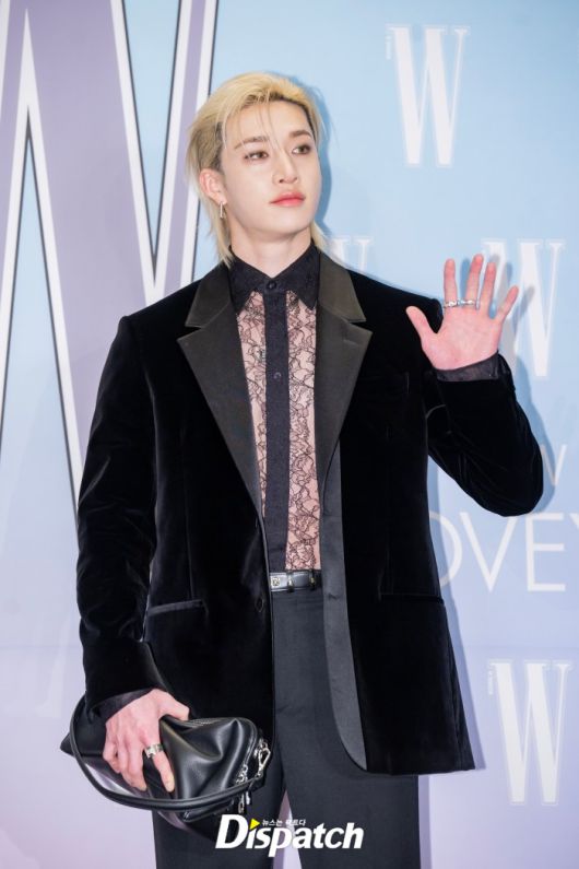 스트레이 키즈 방찬이 포즈를 취하고 있다.