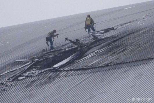 [체르노빌=AP/뉴시스] 14일(현지 시간) 우크라이나 체르노빌에 드론 공격이 발생한 후 체르노빌 원자력 발전소 4호기 잔해를 격리하고 방사능 유출을 막기 위한 돔 구조물(NSC) 지붕이 파손돼 있다. 볼로디미르 젤렌스키 대통령은 이 폭발이 러시아 드론 공격으로 발생했다고 주장하면서 "화재는 진화됐고 인명 피해는 없었지만, 구조물이 손상됐다"라고 말했다. 2025.02.15. /사진=민경찬 |