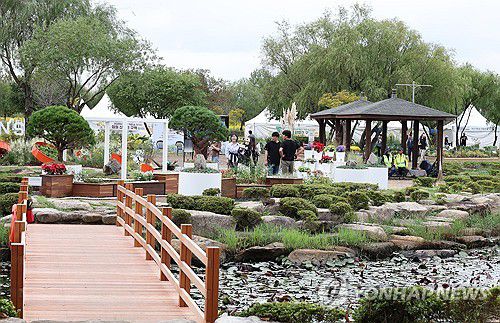 (부산=연합뉴스) 강선배 기자 = 16일 부산 사상구 삼락생태공원 연꽃단지 일원에서 열린 ''에서 참석자들이 전시된 정원을 살펴보고 있다.