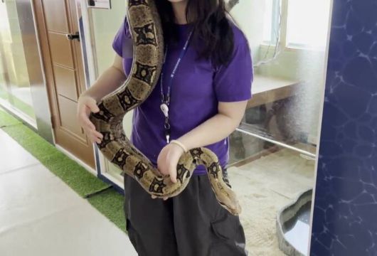 동물에게 불필요한 스트레스를 주는 ‘동물 체험’이 법으로 금지됐지만, 법 개정 이후 새로 허가를 얻은 동물원에서도 비슷한 체험이 이어지고 있다는 지적이 나왔다. 사진은 동물 교육 프로그램 운영 계획서에 포함되지 않은 ‘뱀 만지기’ 체험을 시행 중인 한 동물원. 어웨어 제공 |