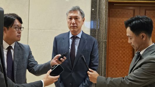 ▲ 노재헌 신임 주중대사가 16일 오후 중국 베이징 서우두공항에서 취재진과 이야기를 나누고 있다.