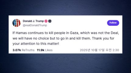트럼프 대통령은 소셜미디어 트루스소셜에서 "하마스가 가자에서 살인을 이어가면 이는 합의 내용이 아니며, 우리가 들어가서 이들을 제거하는 것 외에 다른 선택지가 없다"고 말했습니다.