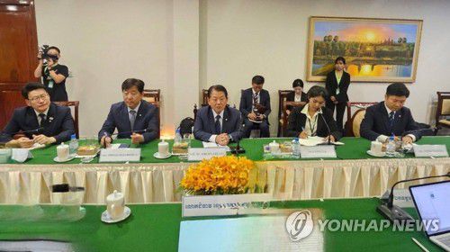 (서울=연합뉴스) 더불어민주당 재외국민안전대책단이 16일(현지시간) 캄보디아 프놈펜에서 현지 하원 의원들과 면담하고 있다. 2025.10.17 [더불어민주당 재외국민안전대책단 제공. 재판매 및 DB 금지]
