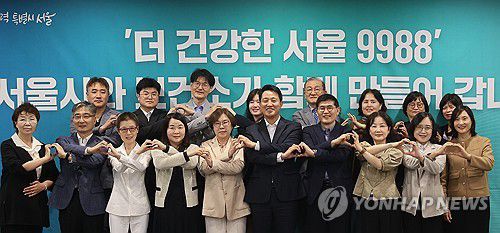 (서울=연합뉴스) 류효림 기자 = 오세훈 서울시장(앞줄 가운데)이 17일 서울시청에서 열린 서울시장 - 자치구 보건소장 간담회에서 참석자들과 기념촬영을 하고 있다. 2025.10.17