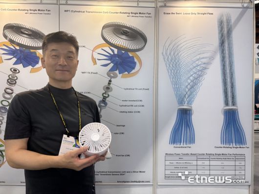 이주열 브로콜리그린 대표는 “기존 선풍기는 하나의 날개로 바람이 퍼져나가는 구조이기 때문에 손실이 컸다”면서 “무선전력전송 기술을 적용해 날개와 본체가 함께 회전하는 구조로 강력한 바람을 만들고 전력 효율을 높일 수 있다”고 말했다.
