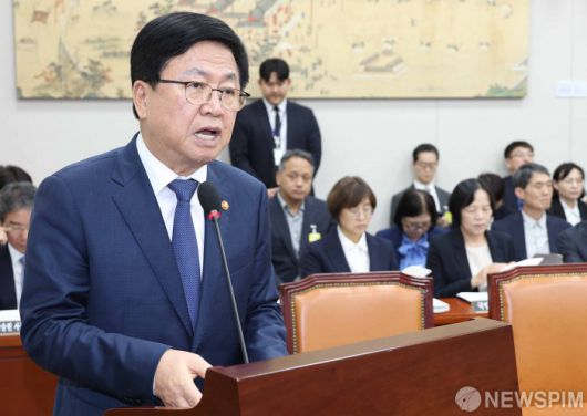 [서울=뉴스핌] 윤창빈 기자 = 최교진 교육부 장관이 14일 오전 서울 여의도 국회에서 열린 교육위원회의 교육부 등에 대한 국정감사에서 업무보고를 하고 있다. 2025.10.14 pangbin@newspim.com |