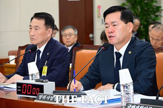 [더팩트ㅣ국회=남윤호 기자] 석종건 방위사업청장이 17일 오후 서울 여의도 국회에서 열린 국방위원회의 방위사업청 등에 대한 국정감사에 출석해 질의 답변을 하고 있다.