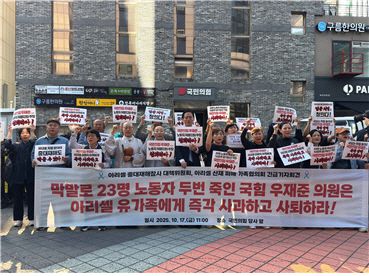 아시아투데이 이하은 기자 = 아리셀중대재해참사대책위원회와 유가족이 박순관 아리셀 대표에 대한 1심 판결 형량이 과도하다는 취지의 주장을 한 우재준 국민의힘 의원을 향해 의원직 사퇴를 요구했다.